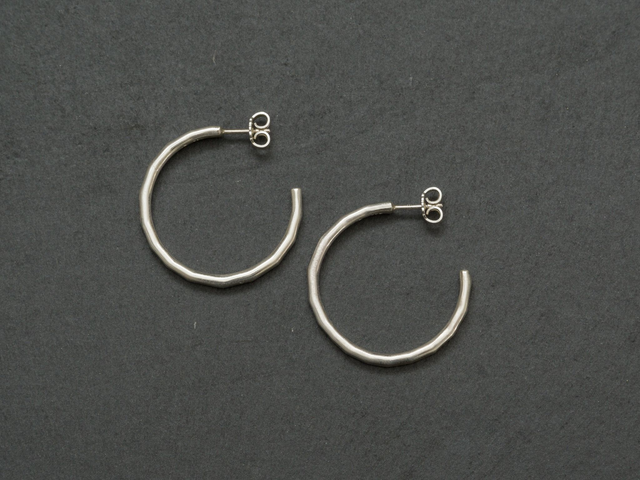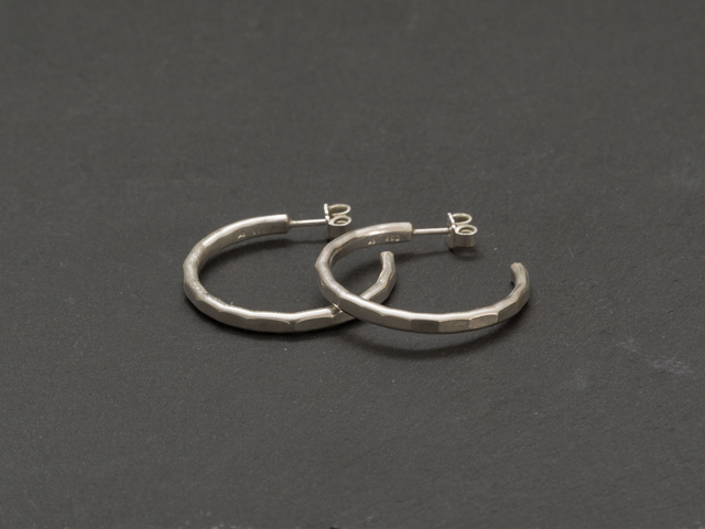 Creolen aus 935 Silber mit Steckerverschluss. Die Oberfläche ist gehämmert.