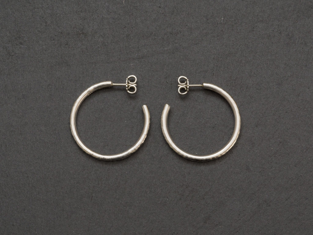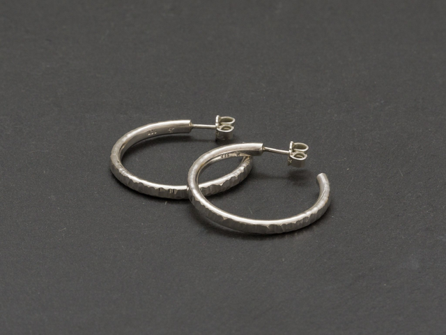 Creolen aus 935 Silber mit Steckerverschluss. Die Oberfläche ist gehämmert.